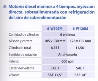 La serie W representa la evolución de productos testado a gran escala sobre el conjunto de aplicaciones marinas mundiales. Gracias al reconocimiento cualitativo de nuestros clientes internacionales, hemos desarrollado una solución innovadora en resupuesta a la complejidad tecnológica creciente. Los motores W105 y W126 de 60 a 331 kW, 1500 a 2425 rpm, situan así su trabajo en el centro de nuestras preocupaciones.
